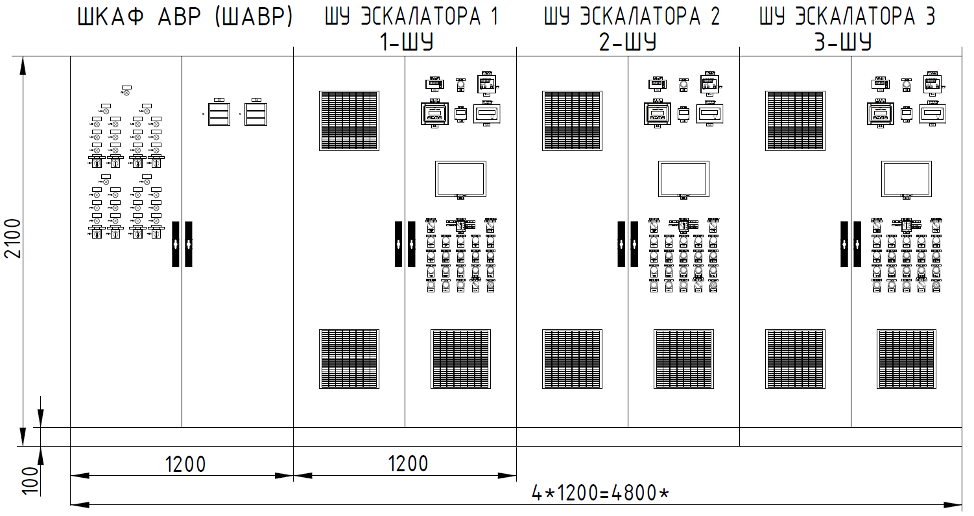 Устройство предназначено для распределения электроэнергии от двух независимых вводов между шкафами управления и автоматического управления электроприводом эскалаторов с применением частотного регулирования скорости движения лестничного полотна.